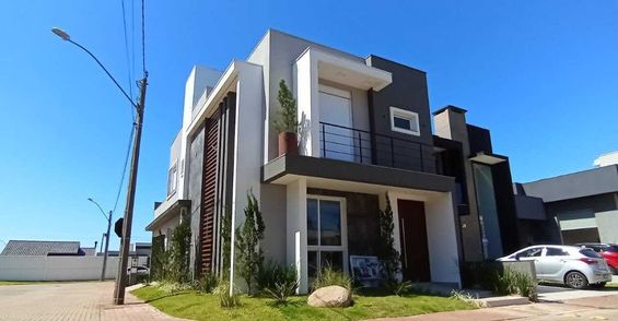 Belíssima casa de esquina com 156m², três dormitórios, sendo uma suíte com hidromassagem, gourmet integrado, garagem para 02 carros, amplo terraço, espera para ofurô, espera para ar condicionado e excelente padrão de acabamento.