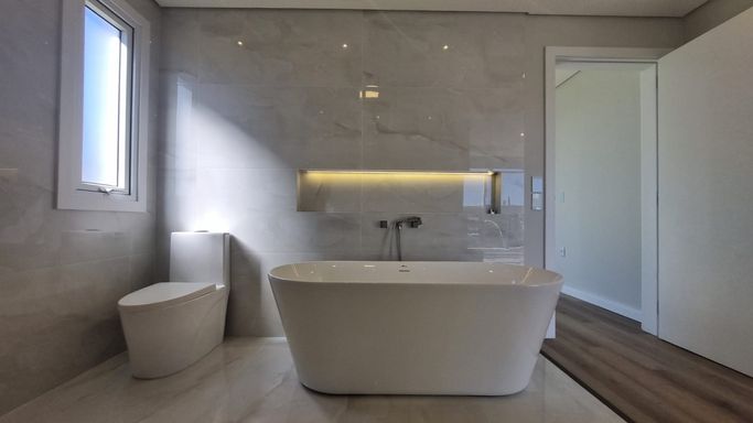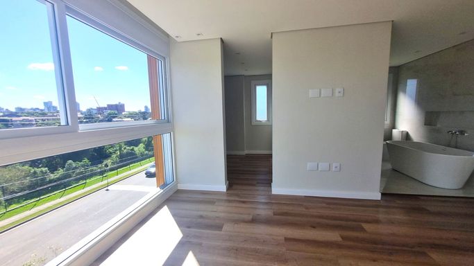 3 suítes, sendo uma master com dois closets e uma linda banheira de imersão