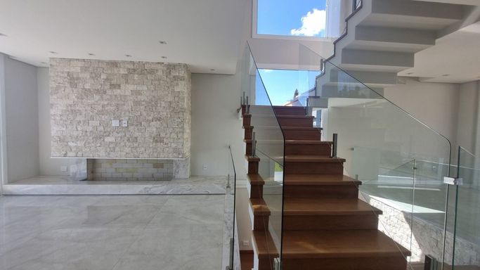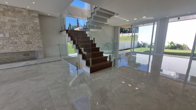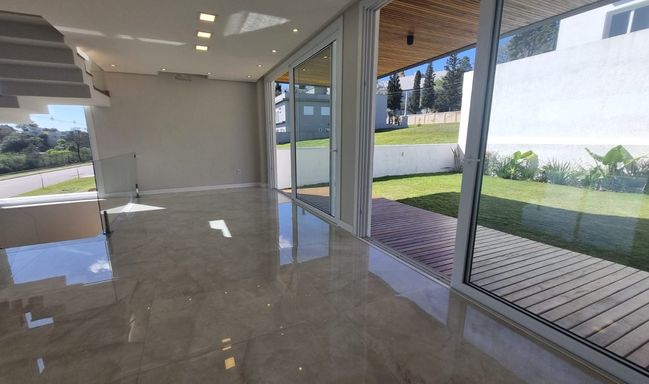 Casa inteligente com automação em toda a iluminação, aberturas em PVC com persianas automatizadas com controle direto do seu celular ou tablet.