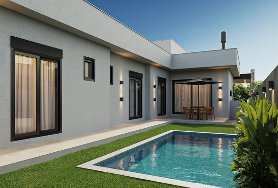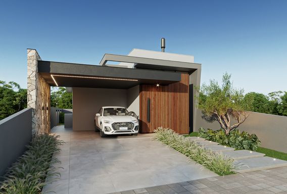 Casa térrea no bairro planejado Reserva do Arvoredo, com 150m², projeto contemporâneo, pensado para unir estética, conforto e funcionalidade.