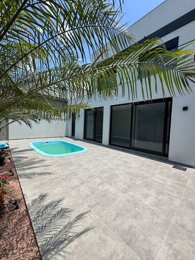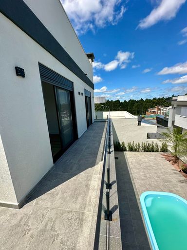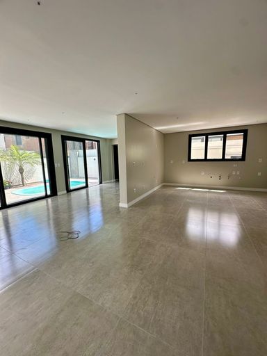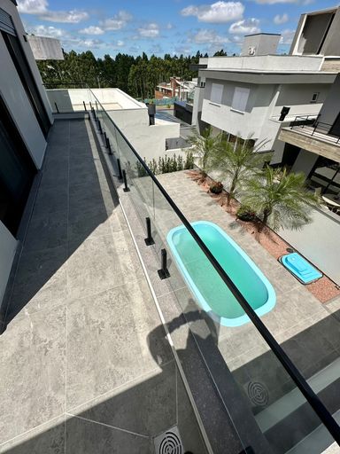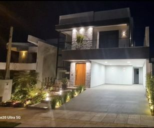 A residência com projeto moderno possuí 243m², 03 amplas suítes com sacada, piscina com deck, espaço gourmet com churrasqueira, living integrado com cozinha, lareira revestida em granito, com excelente posição solar.