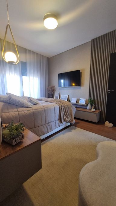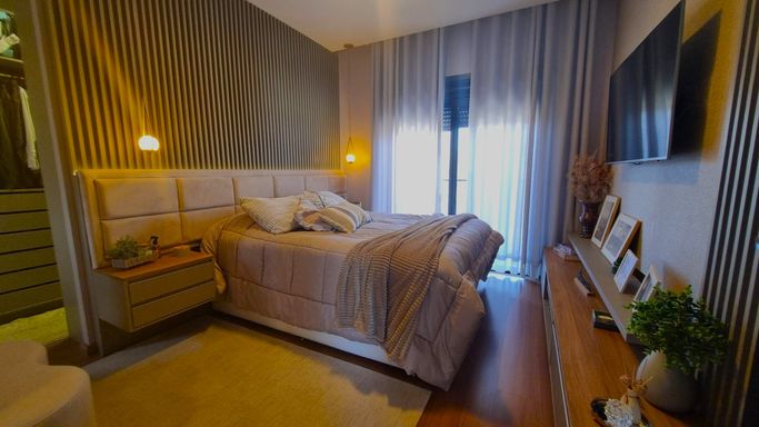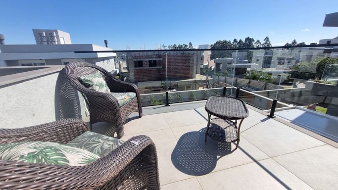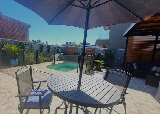 O imóvel dispõe de 184m², ambientes integrados, 03 dormitórios, sendo uma suíte master com closet e spa, duas suítes americanas, ar em todos os cômodos, sala de estar com adega e lareira, espaço gourmet com churrasqueira, pátio amplo com piscina aquecida e pergolado, posição solar privilegiada, lavabo, lavanderia, placas solares e 02 vagas cobertas de garagem.