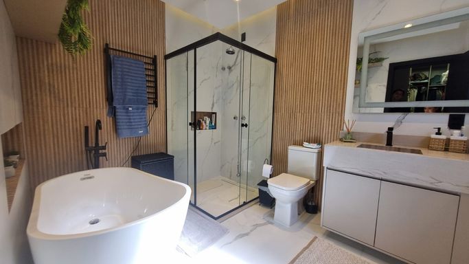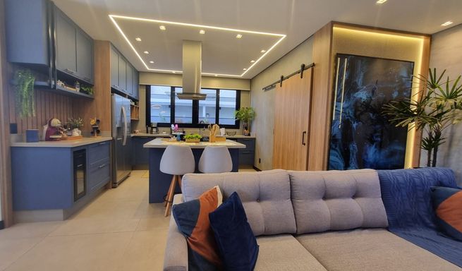 A casa se distingue pela sua belíssima decoração que conta com móveis planejados de alto padrão e iluminação diferenciada.